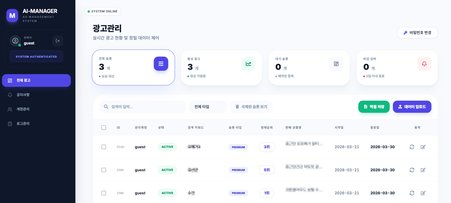 AI-MANAGER는 광고를 매체사로 송출합니다.